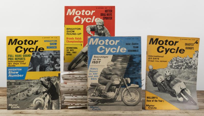 Lot 54 of 267: MOTORCYCLE: Forty seven issues of Motorcycle magazine from 1965, Vol 114. Issue range of No. 3212 to No. 3263