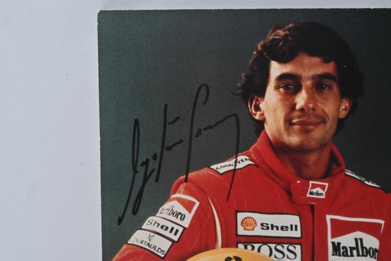 Lot 583B of 557: SENNA: A portrait photograph of Ayrton Senna, portrait signed by Ayrton Senna