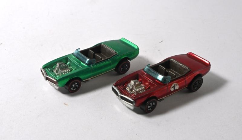 Lot 50 of 564: HOT WHEELS: Two 1970 Hot Wheels 'Redline' 'Light My Firebirds'. Red and Green