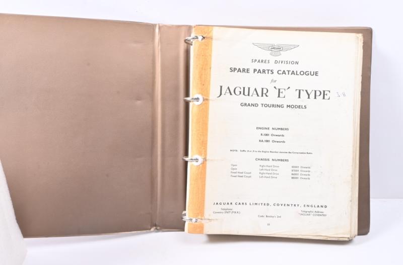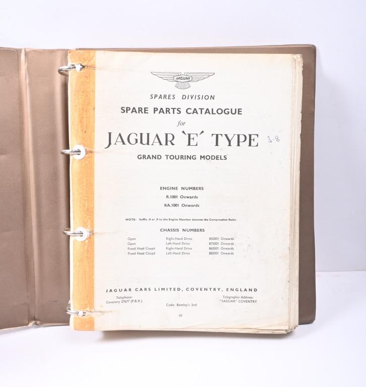 Lot 237 of 564: JAGUAR: An original 1963 'SPARE PARTS CATALOGUE for JAGUAR 'E' TYPE - GRAND TOURING MODELS - ENGINE NUMBERS R.1001 Onwards, RA.1001 Onwards' (PUBLICATION J.30)
