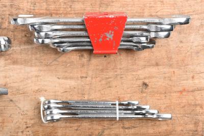 Lot 180 of 661: SPANNERS: A collection of four sets of open and ring spanners. Metric and Imperial