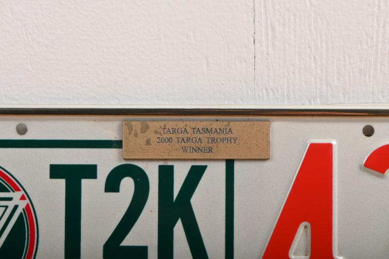 Lot 94A of 661: TARGA TASMANIA: Two Targa Tasmania competitor number plates including Targa Tasmania 2000 Targa trophy winner and 'T02' competitor plate