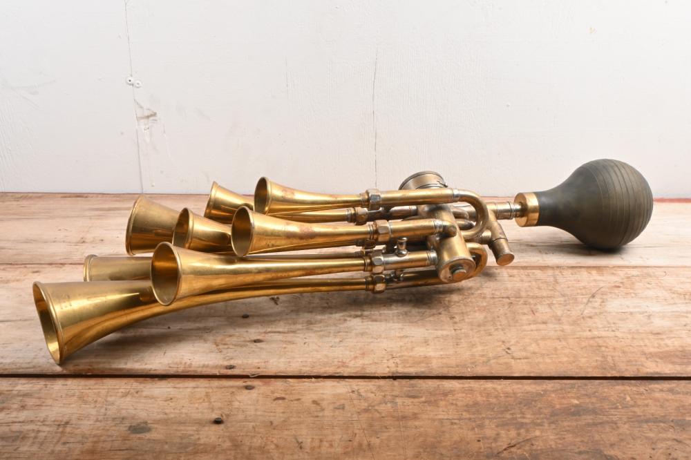 Lot 167A of 661: HORN: A exceptional circa 1910 Cicca (France) eighth-note brass trumpet horn "Le Testophone" model