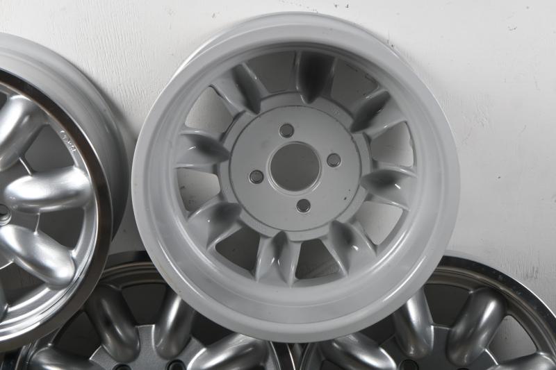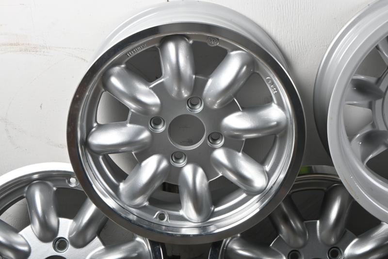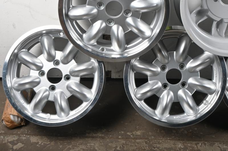 Lot 10B of 661: MINILITES: A set of five unused 15"x6 Minilites, with five Minilite branded centrecaps and set of threaded lugnuts. '5345' stamped into inside rear of each wheel. PCD 110mm (Updated Listing)