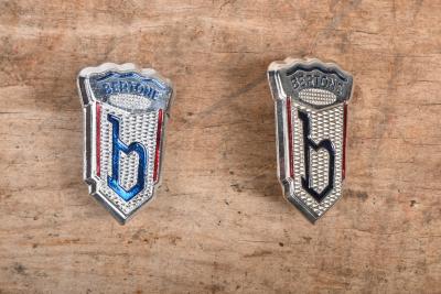 Lot 75C of 661: BERTONE: A pair of Silver Bertone 'B' badges to suit Alfa Romeo 101 Series Sprints and Sprint Speciales.