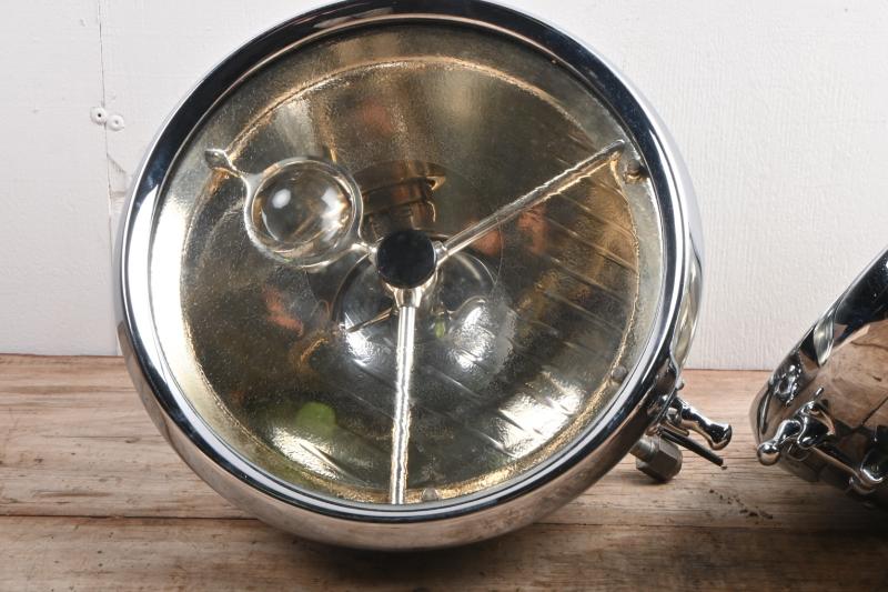 Lot 8A of 661: LUCAS: A pair rare new old stock Lucas P100 Bulls Eye head lamps. Lense diameters of 26cm