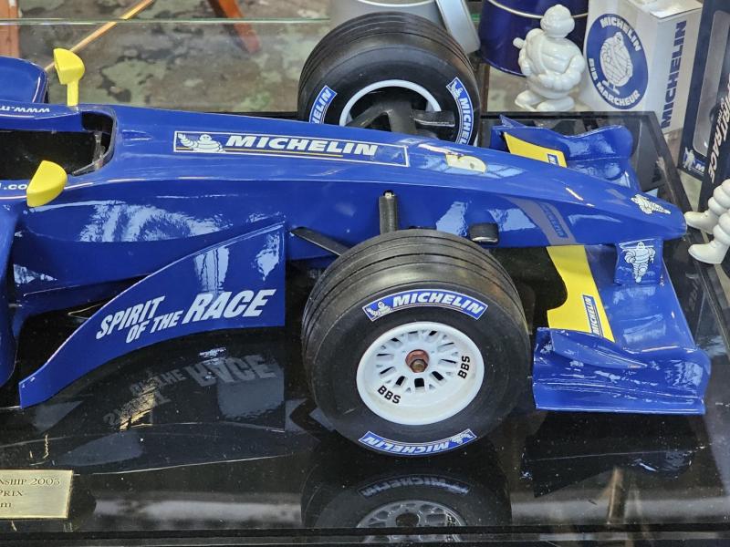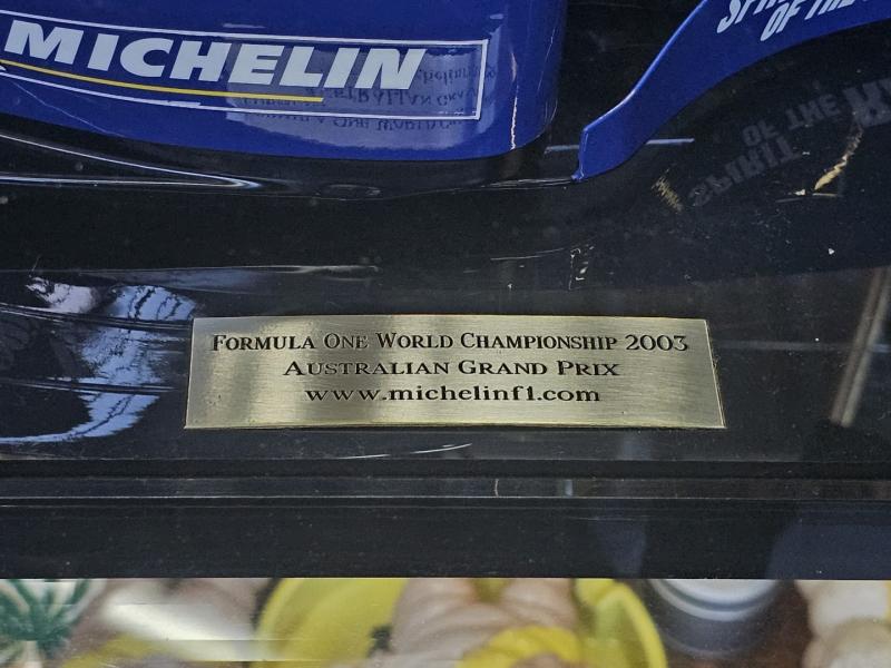 Lot 7 of 319: MICHELIN: A rare large model of a Michelin branded F1 car, on presentation base with perspex case and inscription plaque reading 'Formula One World Championship 2003, Australian Grand Prix',car approx. 72cm long, 29cm wide