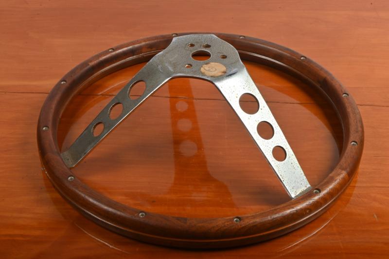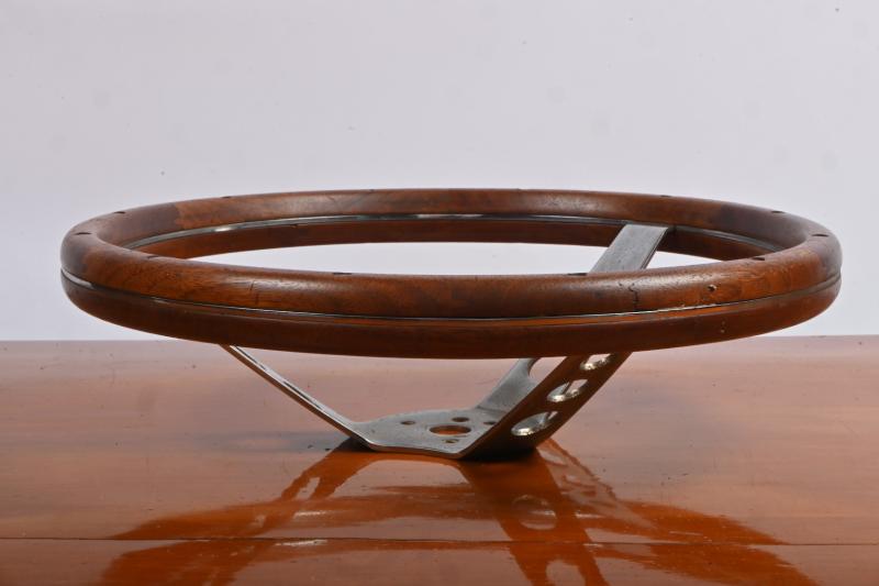 Lot 40 of 319: STEERING WHEEL: A timber rimmed deep dished steering wheel, 34cm diameter