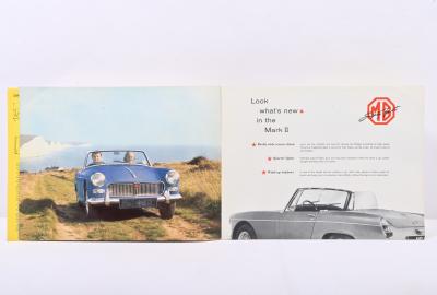 Lot 30 of 251: MG MIDGET: Two original and superb MG Midget sales brochures. 1964 'Look into the Mark II MG Midget' & 1966 Mk III MG Midget sales brochures