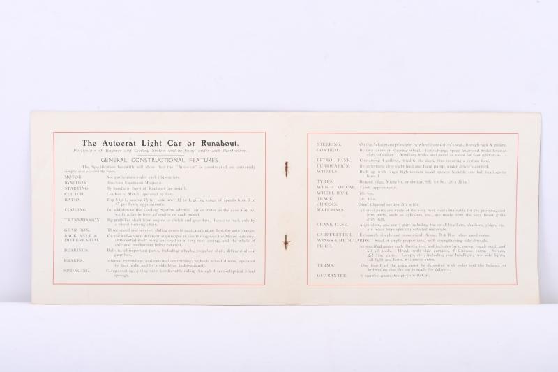 Lot 28 of 285: AUTOCRAT: A sales brochure for the 'THE AUTOCRAT' light car. Circa 1920