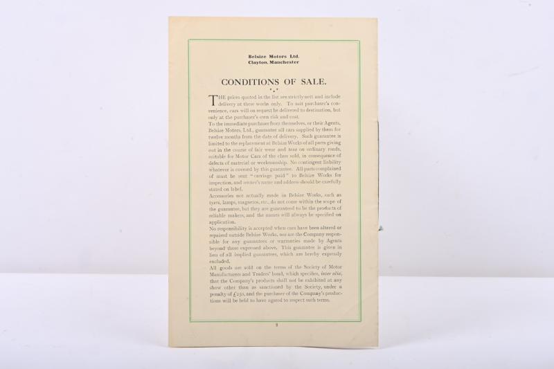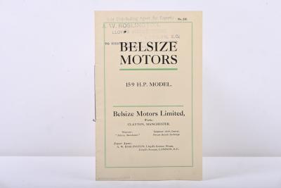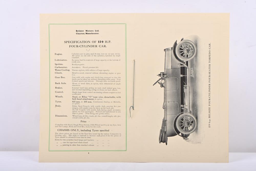 Lot 31 of 285: BELSIZE: An original 1911 BELSIZE MOTORS 15.9 H.P. MODEL. (No. 235) brochure
