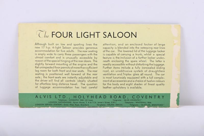 Lot 9 of 285: ALVIS: A 1937 ALVIS - 'The NEW SEVENTEEN' sales brochure