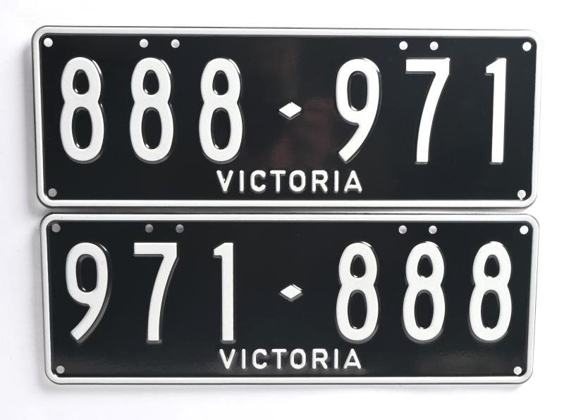Lot 25 of 27: Six-digit Victorian Custom Numerical 'His & Hers' plate set '971-888' & '888-971', sold with rights to display