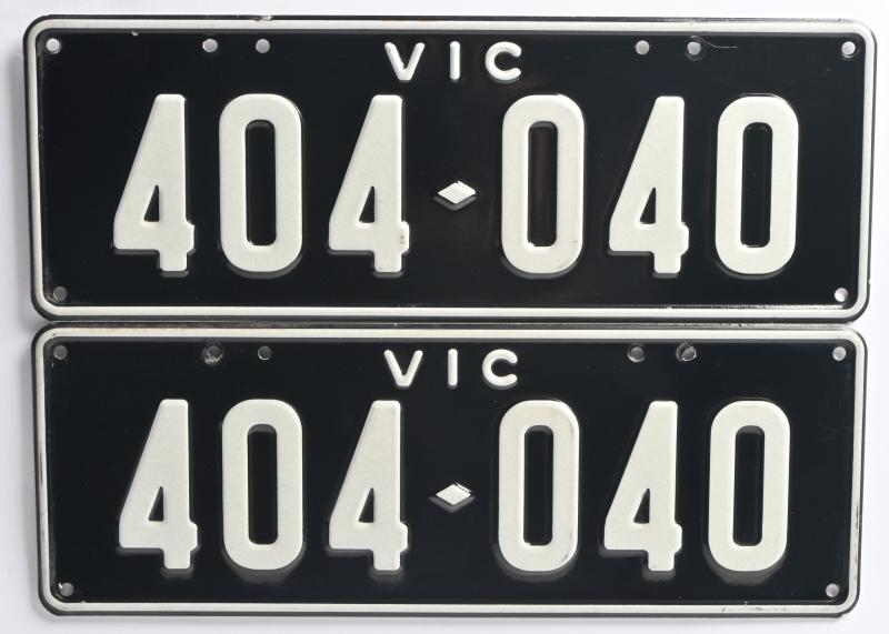 Lot 15 of 27: Six-digit Victorian Custom Numerical plates '404-040', sold with rights to display