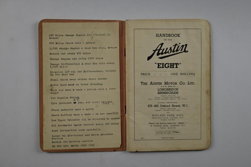 Lot 299 of 358: AUSTIN: A 1939 Handbook Of The Austin "EIGHT" (Publication No.1756A)