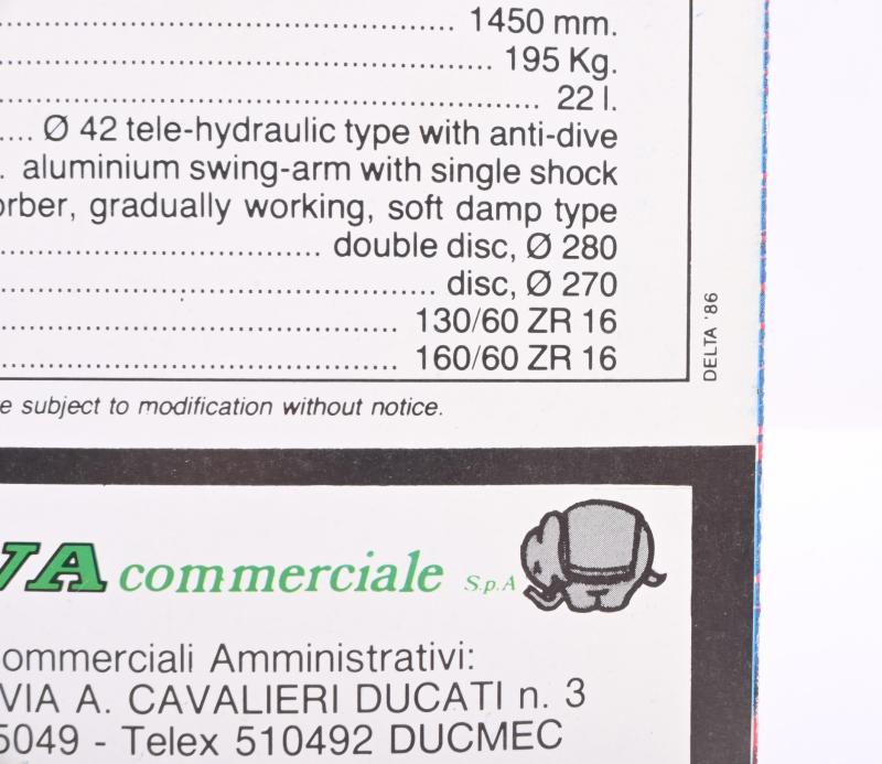 Lot 46 of 93: DUCATI: A colour fold out 1986 Ducati 750 Paso Desmo sales brochure