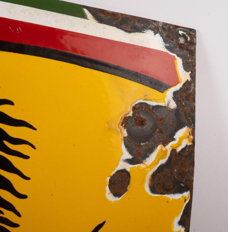 Lot 20a of 466: FERRARI: A large enamel Ferrari convex sign, 60cm high, 43cm wide