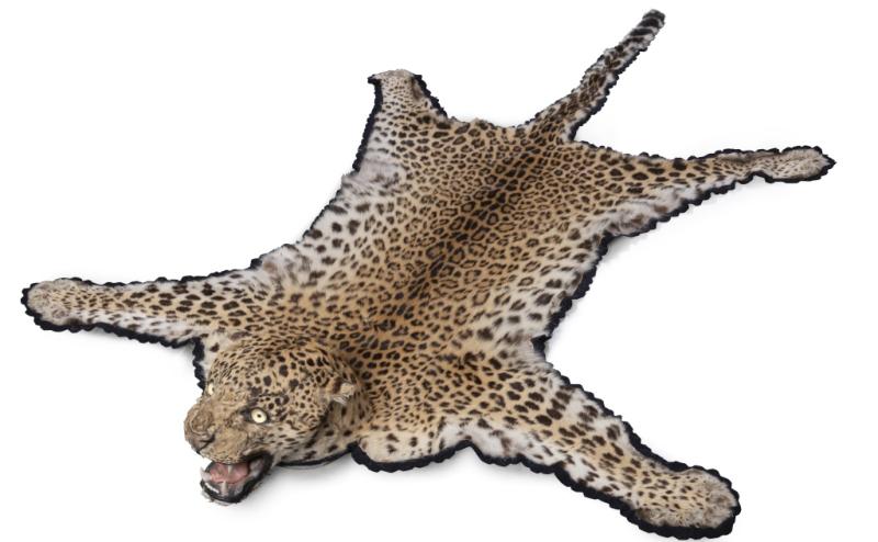 Lot 62 of 180: A young leopard skin rug, early 20th century with fully mounted head on felt backing, length 233cm [Ex-Bonhams 2010, Sale 19041, Lot 779]