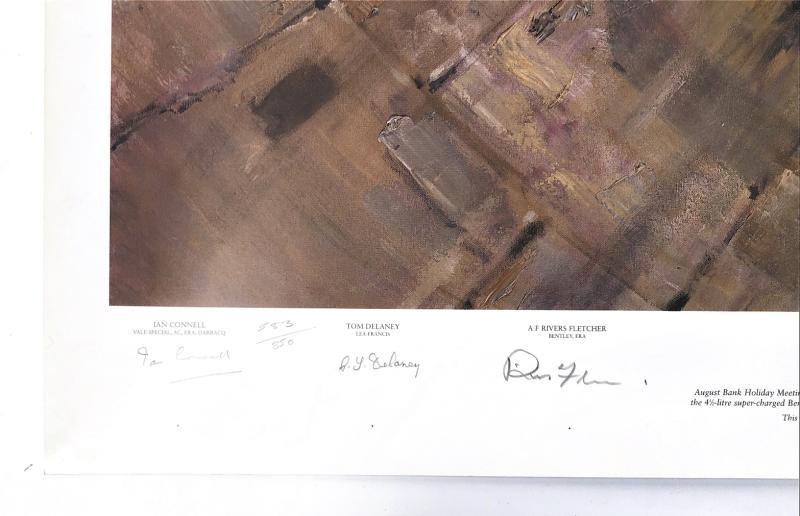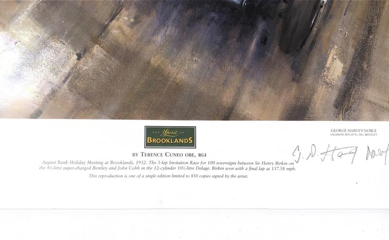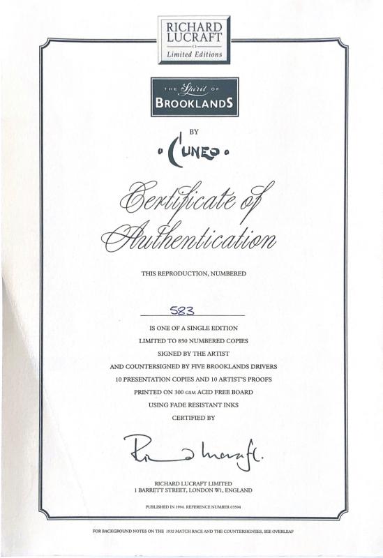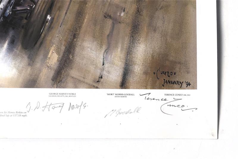 Lot 16 of 65: BROOKLANDS: A limited edition print (583/850) by Terence Cuneo Obe titled 'The Spirit of Brooklands', signed by artist and 5 others [Location: Cheltenham, VIC]