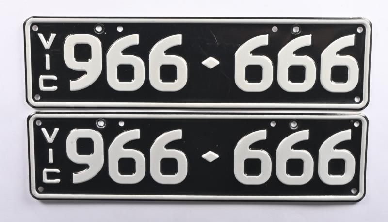 Lot 40 of 65: Six-Digit Victorian Custom Numeric plates '966-666', sold with rights to display [Location: Cheltenham, VIC]