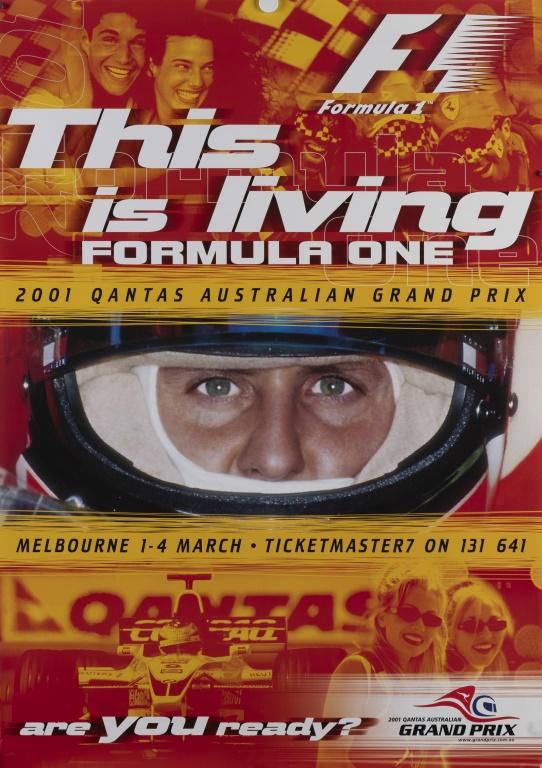 Lot 100 of 226: AUSTRALIAN GRAND PRIX: A poster promoting the 2001 Australian Grand Prix - 'This is Living Formula One', 84cm high, 59cm wide