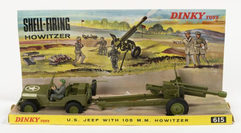 Lot 3 of 497: JEEP/HOWITZER: A Dinky Toys No. 615 US Jeep with 105 mm Howitzer, within original box and display card, model in superb condition