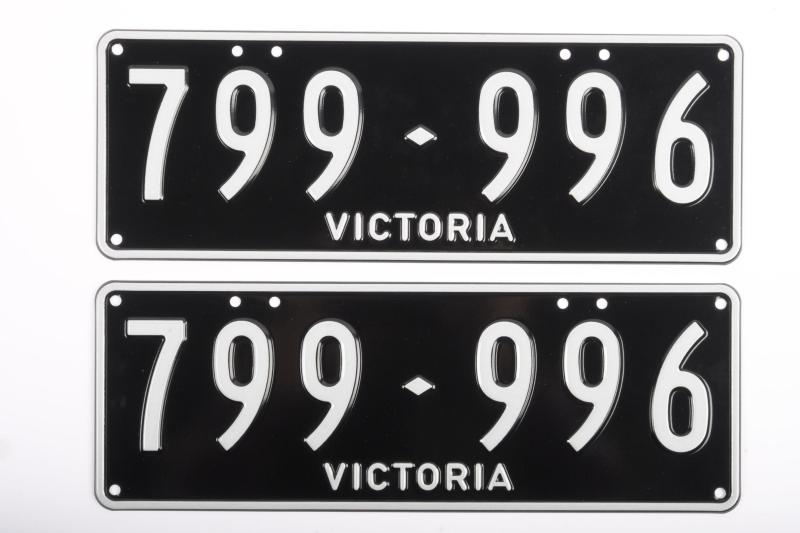 Lot 8 of 21: Six-Digit Victorian Custom Numeric plates '799.996', sold with rights to display [Location: Cheltenham, VIC]