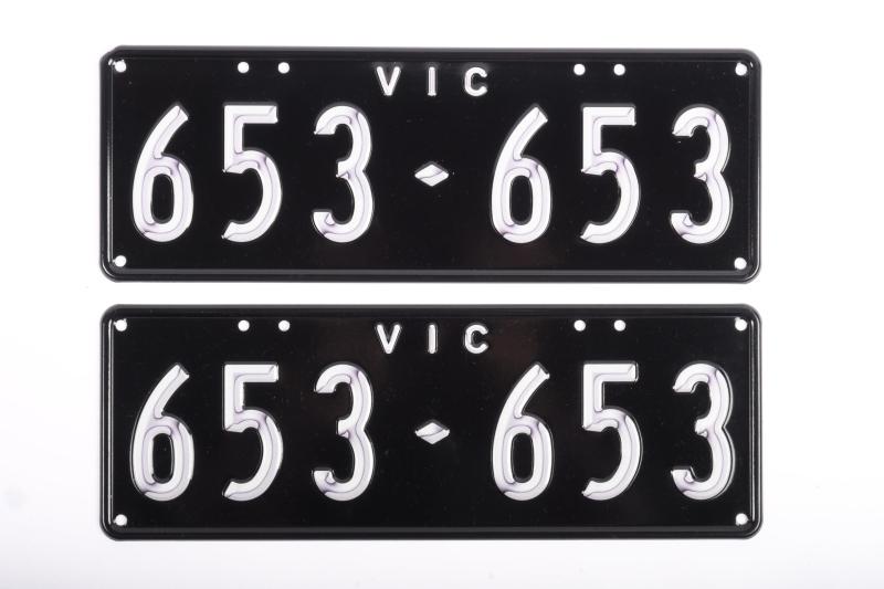 Lot 20 of 21: Six-Digit Victorian Custom Numeric plates '653.653', sold with rights to display [Location: Cheltenham, VIC]