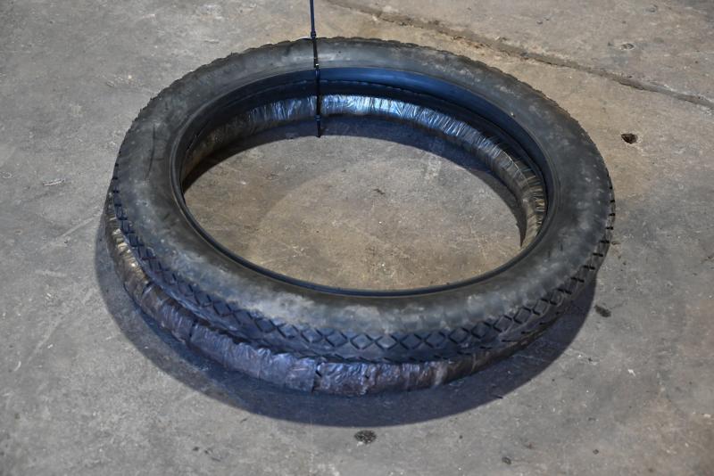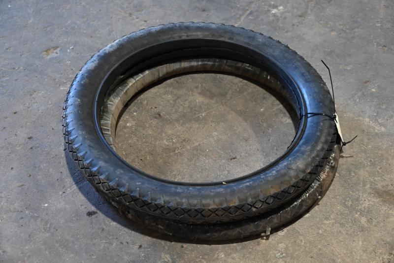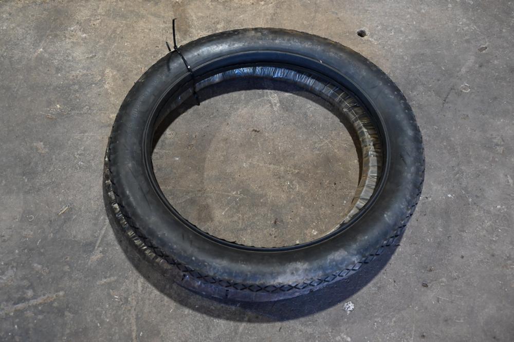 Lot 47 of 360: TYRES: A pair of Okada 26 x 3-inch NOS tyres, one still in original wrapping [Location: Sydney]