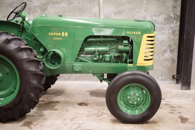 Catalogue Auction info The Classic & Vintage Tractor Auction - A Gentleman's Collection(#107) 07/04/2019 11:00 AM AEST CLOSED Lot 95 of 208: 1955 OLIVER SUPER 88 TRACTOR CLICK IMAGE TO ENLARGE PreviousNextSimilar Items Lot closed - Winning bid:$26,000 The Classic & Vintage Tractor Auction - A Gentleman's Collection(#107) 07/04/2019 11:00 AM AEST CLOSED Description VIN: Engine No: Registration: Description: 1955 OLIVER SUPER 88 TRACTOR SERIAL No. 26657-812 MODEL No. 18-5108 6-cylinder 4.3-litre diesel engine 6-forward 2-reverse gears Side pulley, drawbar, rear PTO, rear hydraulics, body well restored, all tyres show no sign of wear Engine starts Please note: Battery not included Categories: Tractor Shipping info