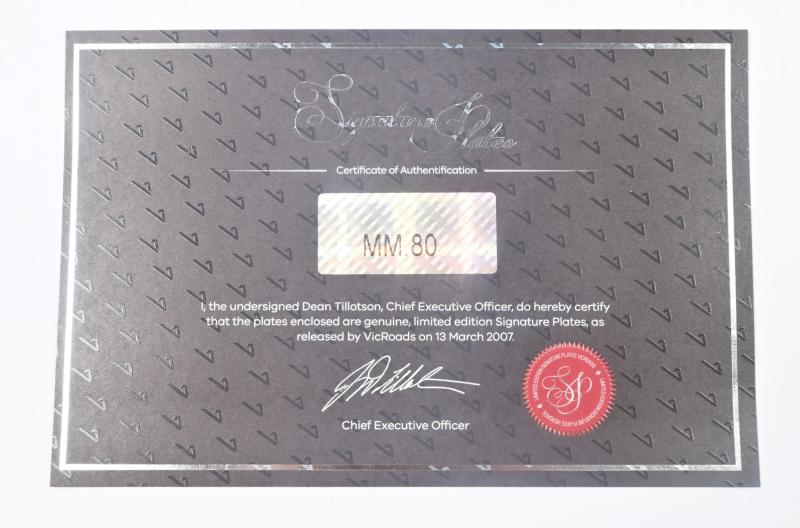 Lot 32 of 61: Victorian Signature Series plate 'MM-80', sold with rights to display - Location: Cheltenham, VIC]