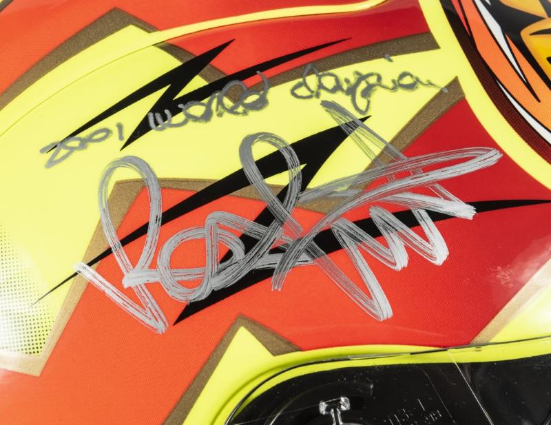 Lot 8 of 388: ROSSI: Valentino Rossi signed helmet celebrating his 500cc 2001 World Championship win. L.E 2/46