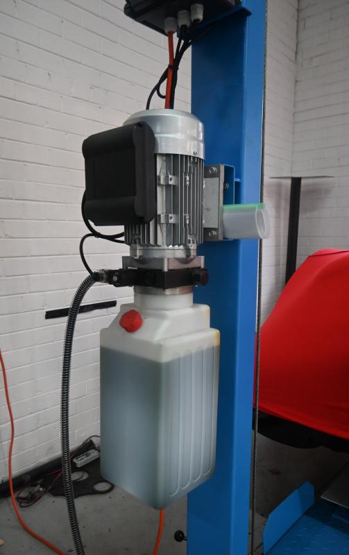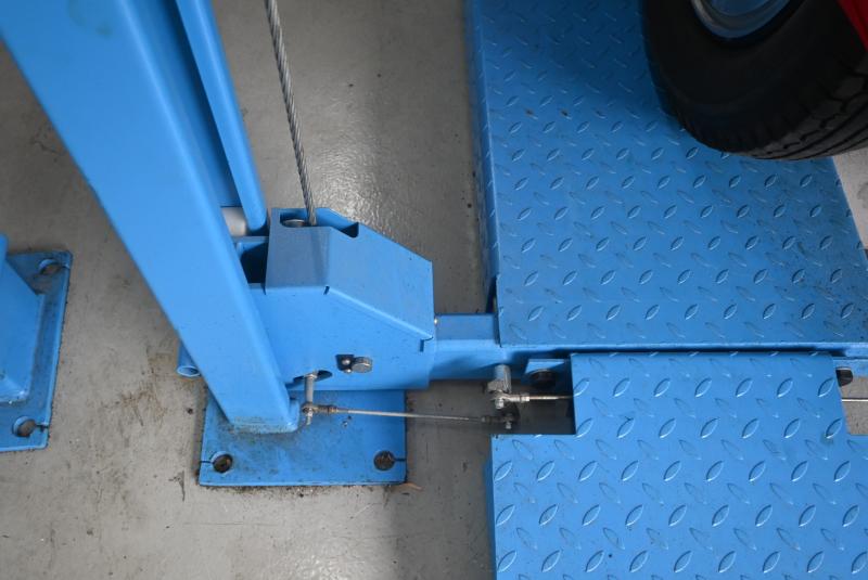 Lot 1 of 128: HOIST: A four post 240v hydraulic vehicle hoist 3600kg load capacity, complete with approach ramps and moving dollies. [Location: Mount Waverley]