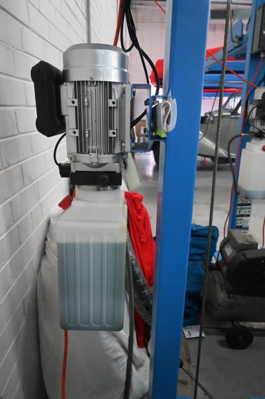 Lot 30A of 128: HOIST: A four post 240v hydraulic vehicle hoist 3600kg load capacity, complete with approach ramps and moving dollies. [Location: Mount Waverley]