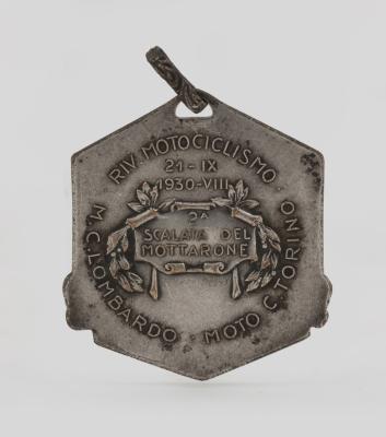 Lot 94a of 616: MOTORCYCLING: A fine small double sided medallion dated 1930 from a motorcycling hill climb event held at Mottarone, Italy, 2.5cm in diameter