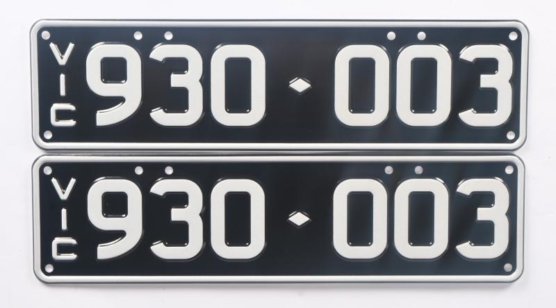 Lot 14 of 18: Six-Digit Victorian Custom Numeric plates '930-003', sold with rights to display [Location: Cheltenham, VIC]