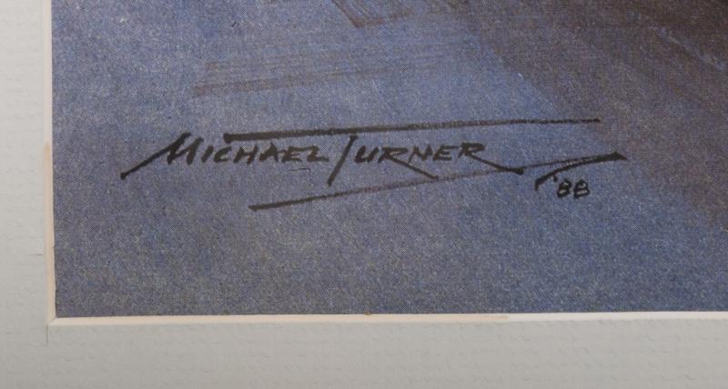 Lot 39 of 470: LE MANS: A print featuring the 1988 Le Mans Jaguar XJR-9 'Silk Cut Jaguar' #2, by Michael Turner titled 'The winning Jaguars at Le Mans' framed and glazed, 63.5cm wide, 50cm high overall.