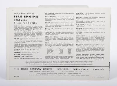 Lot 16 of 189: 1956 FIRE ENGINE: An original 1956 'The Land Rover Fire Engine', three page fold out brochure