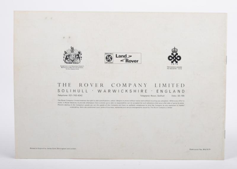 Lot 32 of 189: 1971 4WD: An original 1971 sales brochure, 'The World's Most Versatile Vehicle - Land Rover', 14 pages, printed in England