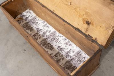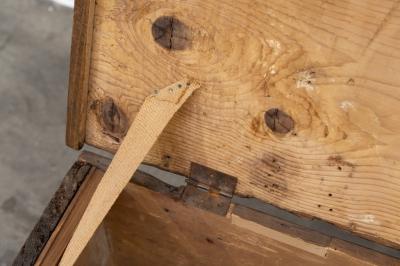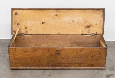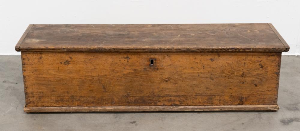 Lot 2 of 573: COFFER: A nicely patinated large 19th century pine coffer/blank box, 46cm high, 166cm long, 48cm deep