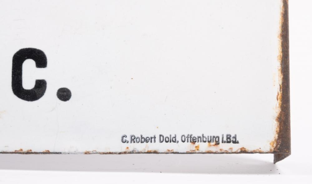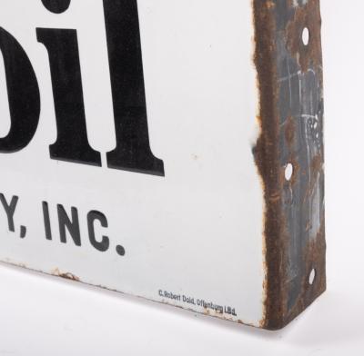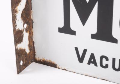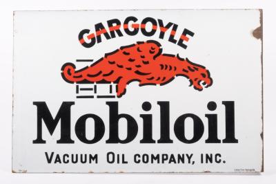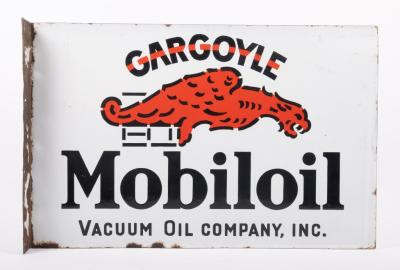 Lot 23 of 573: MOBILOIL: An excellent original enamel Mobiloil 'Gargoyle' Vacuum Oil Company flange sign by German enamellers 'C.Robert Dold, Offenburg Ltd' 39.5cm high, 61cm wide