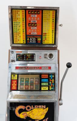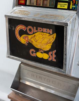 Lot 25A of 573: POKER MACHINE: A 'Golden Goose' 20c poker machine by Aristocrat, circa 1970s 178cm high, 40cm wide, 39cm deep