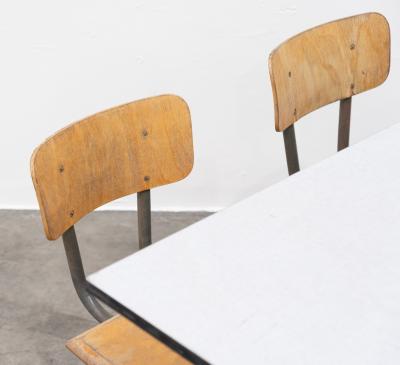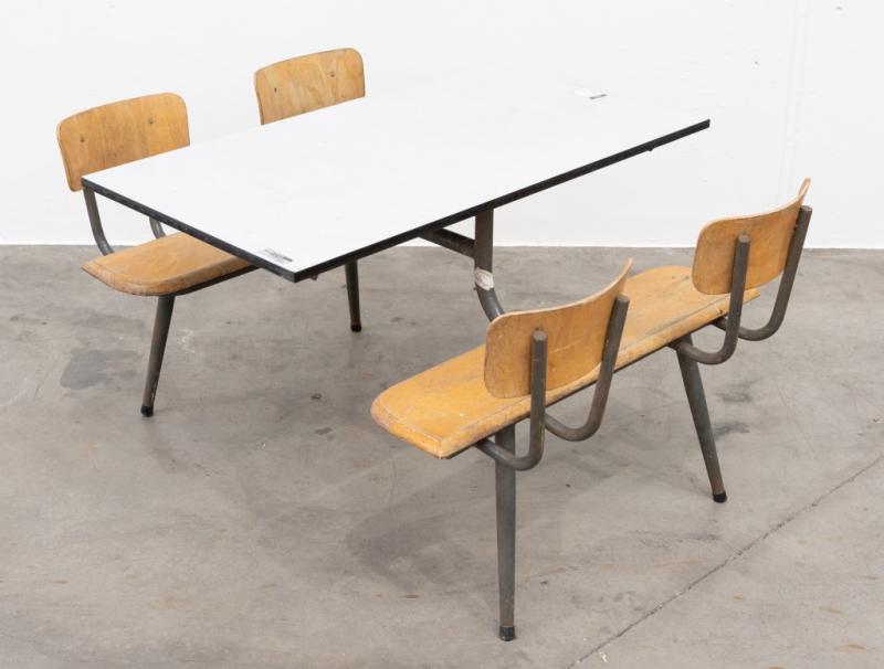 Lot 28A of 573: CANTEEN TABLE: A four person canteen table, believed to produced by Neef Louis Design & Industrials Netherlands, measures 120cm wide, 152cm deep, 80cm high