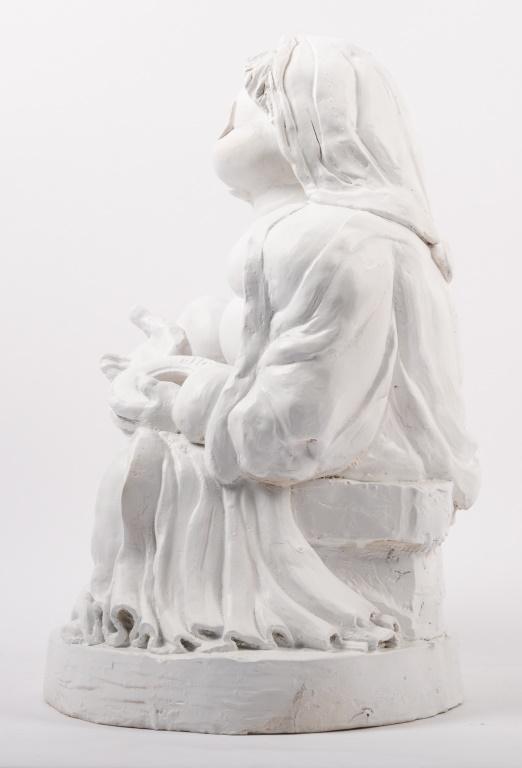 Lot 19 of 30: MICHELIN: An excellent Michelin Bibendum clay sculpture by Australian Artist Terry Lawrie featuring Bibendum as a Madonna and Child pose reminiscent of the famous Leonardo Da Vinci sculpture, approx 39cm high [Location: Melbourne]
