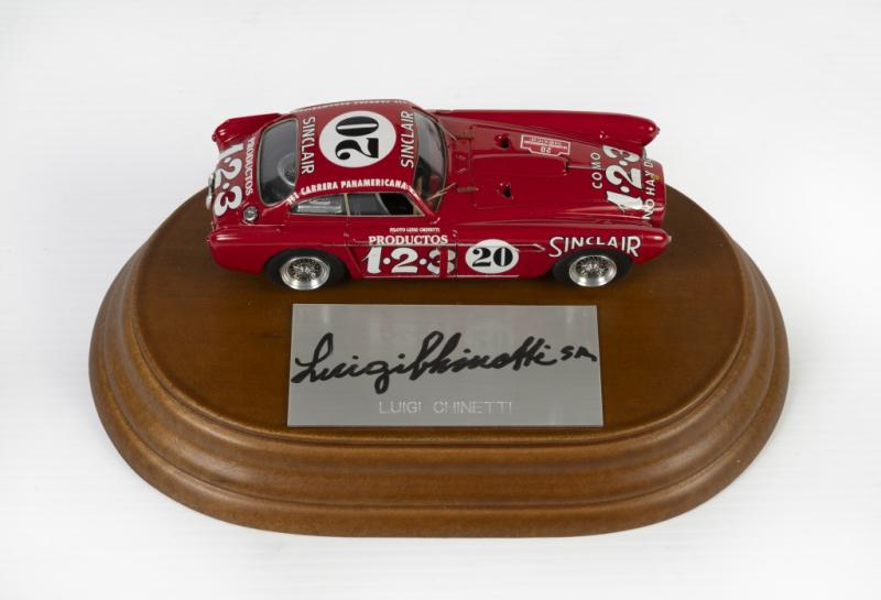 Lot 731 of 600: FERRARI: A Brumm, 1:43 scale, 1952 Ferrari 340, Carrera Mexico, presented on wooden base with driver Luigi Chinetti nameplate and signature