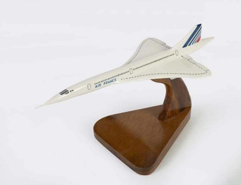 Lot 788 of 600: CONCORDE: A small scale Air France Concorde mounted to display stand, 22cm long, 9cm wingspan