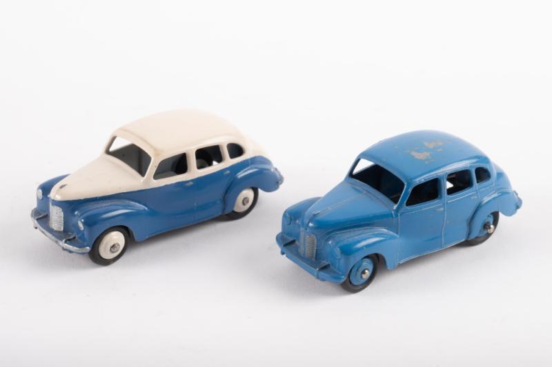 Lot 46 of 217: DINKY TOYS: A pair of Dinky Toys, Austin Devon's, one is original blue, the second one is a re paint in cream over blue