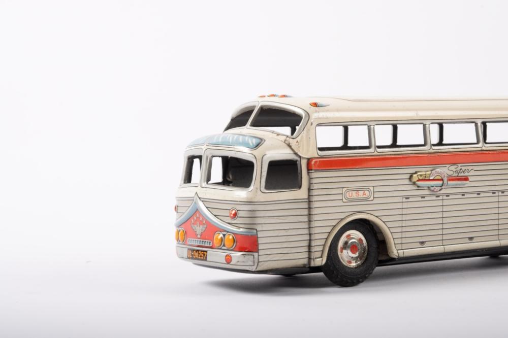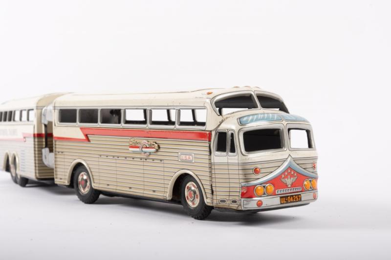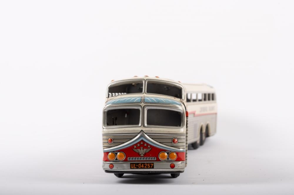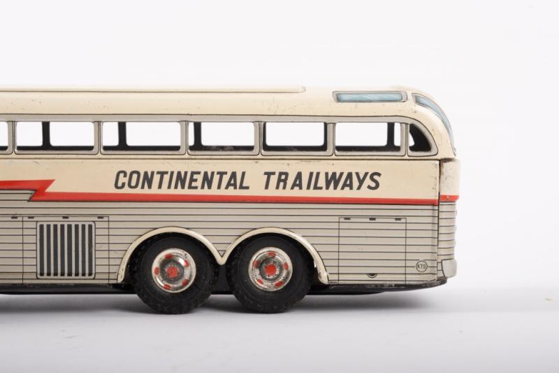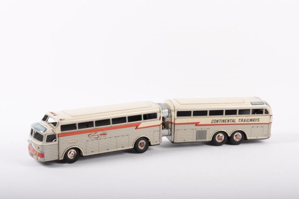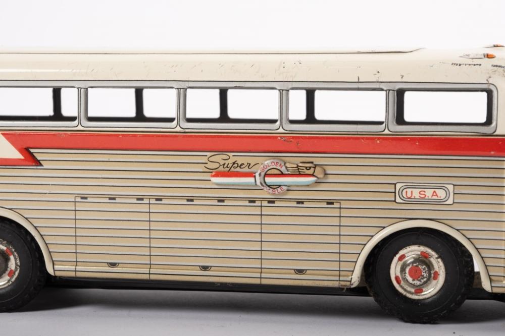 Lot 8 of 217: GOLDEN EAGLE BUS: A c1960s tin toy 'Super Golden Eagle' Continental Trailways articulated bus by Daiya Toys Japan, friction driven, 45cm long