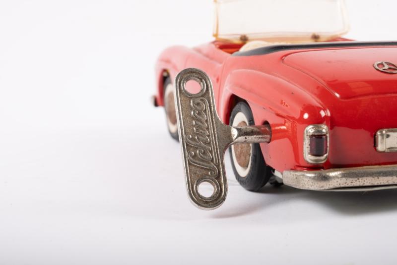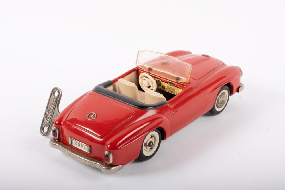 Lot 11 of 217: SHUCO: A late 1950s- early 1960s Shuco No.2097 Mercedes-Benz 190SL in red, wind up complete with key, made in Western Germany, 22cm long