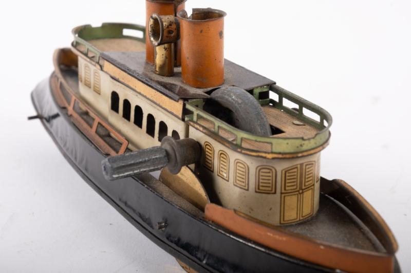 Lot 14 of 217: BOAT: A nice German circa 1914 tin plate Hess tug boat, 21cm long